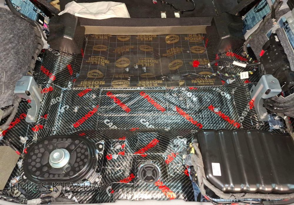 Комплексна шумоізоляція майже нового автомобіля Land Rover Discovery 2024 р.в. з використанням дуже потужного комплекту матеріалів. Звичайно, не обійшлося і без зовнішньої віброізоляції арок.
