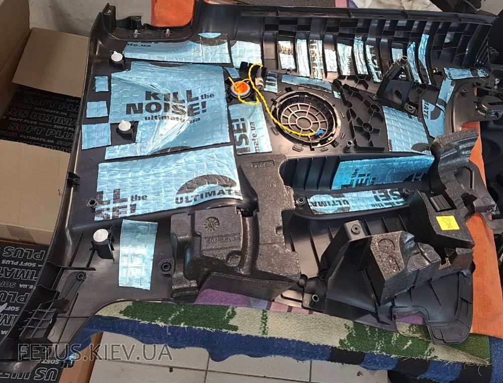 Повна шумоізоляція салону з використанням оптимального за співвідношенням вага / ефективність комплекту матеріалів (ну і про "антискрип" легкозйомних деталей торпедо також не забудемо)